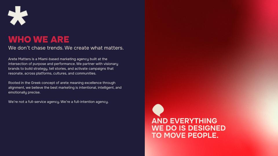 Arete Matters is powered by a diverse group of creatives, strategists, and operators who live and breathe relevance.